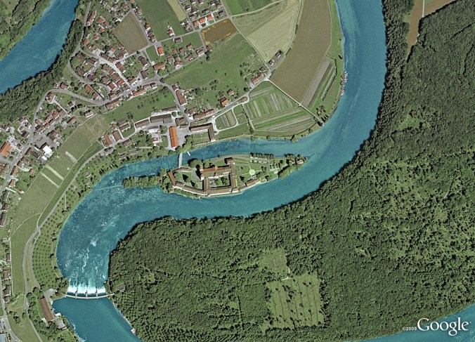 Rundgang Klosterinsel Rheinau 2013 Nach der Durchquerung des äusseren Klosterhofs, noch auf dem “Festland”, fällt, schon während des Gangs über die Brücke, auf, dass sich seit 2009 etwas geändert hat.