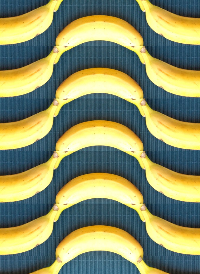 some years ago I worked in Africa and found the fashion pictures with the undulated patterns – then I worked in Rio de Janeiro and walked on the famous pavings by Burle-Marx with the pattern shown on the african images – and one day, I was playing around with bananas, taking pictures of the arrangements;