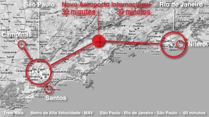 o ‘Metrô de Alta Velocidade’ MAV e o novo aeroporto enter SP e RJ é uma proposta de infra-estrutura moderna. Não existe nenhuma empresa executar essa idéia, nem qualquer discussão pública sobre o assunto;