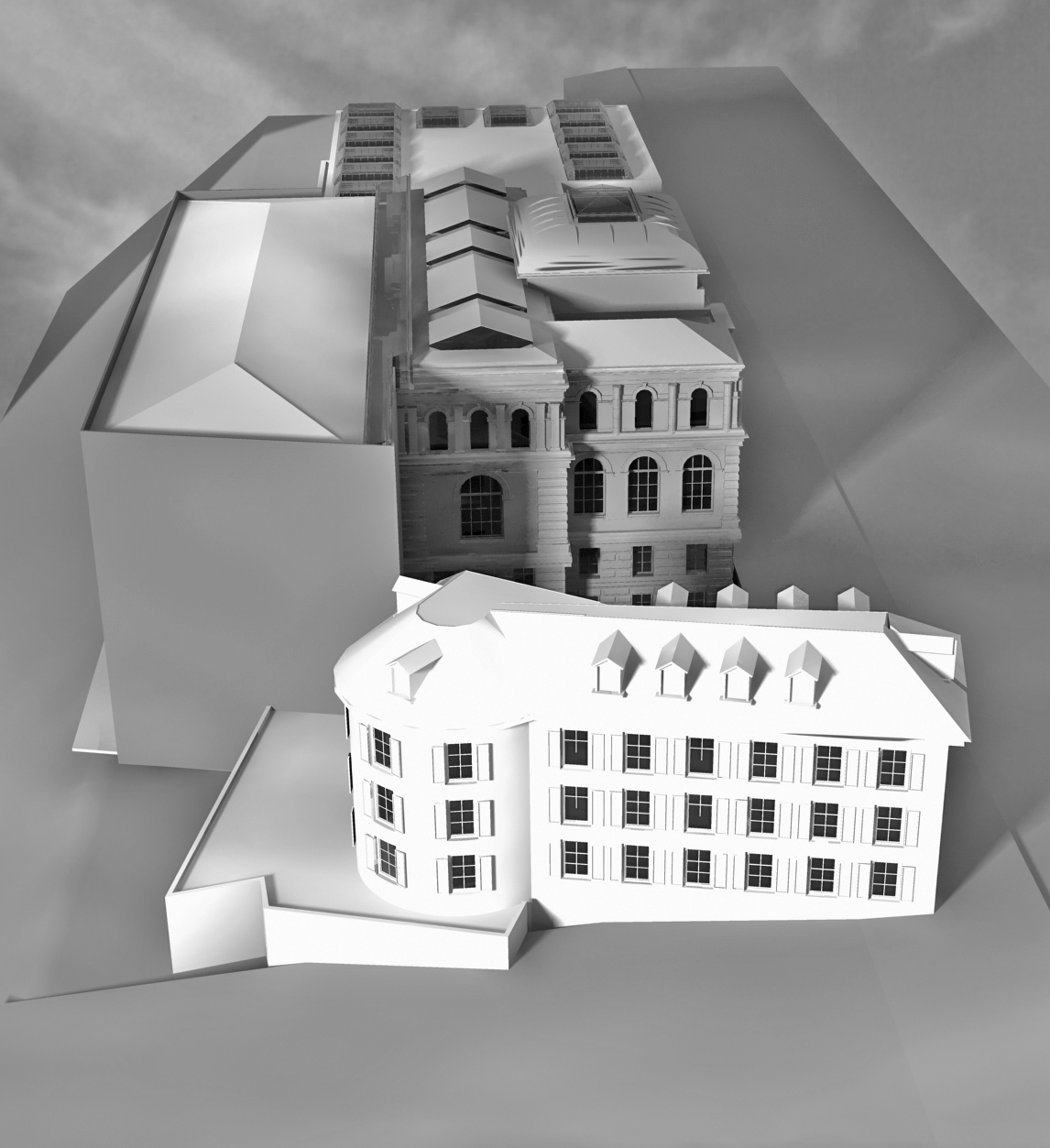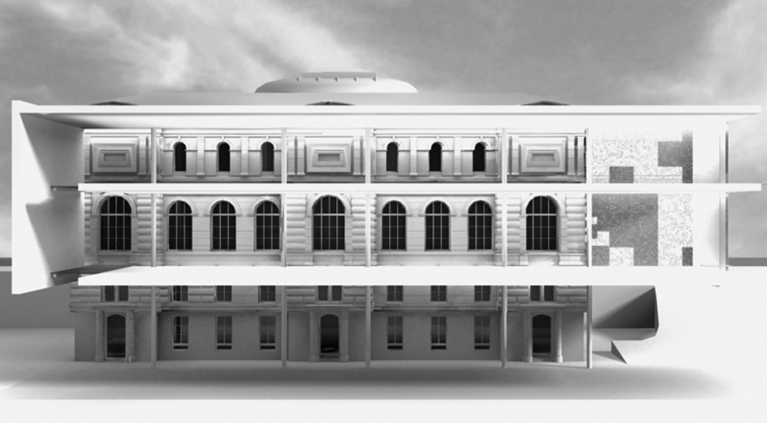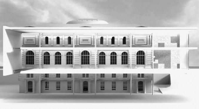 Längsschnitt im Modell – Die historische Nord-Fassade wird Teil der Ausstellungsräume