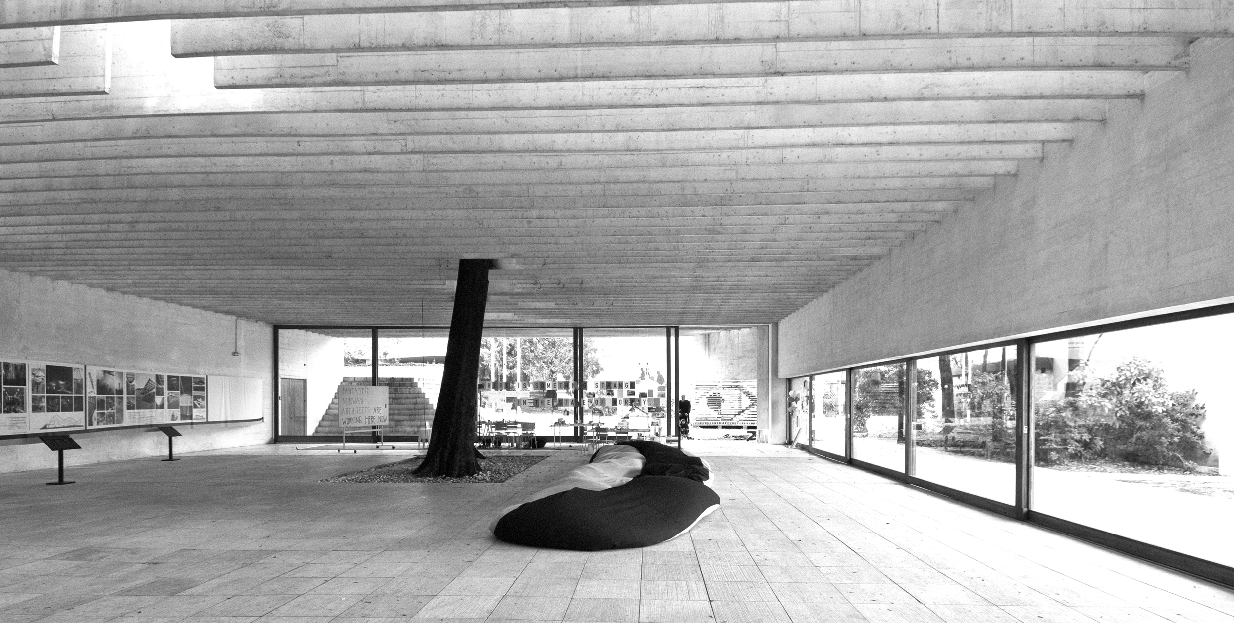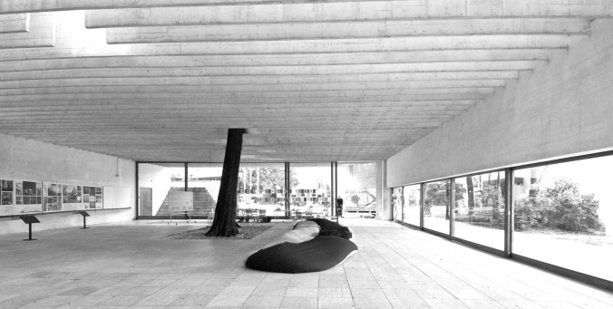 Foyer – Seminarräume, oben – Nordic Pavillon, Venedig, von Sverre Fehn, unten