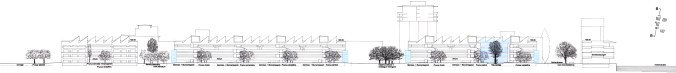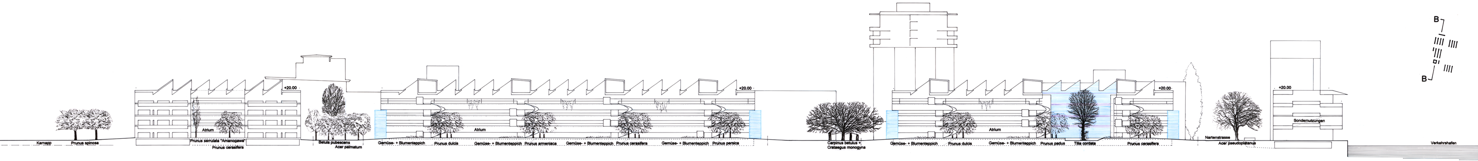 Längsschnitt B-B, durch die Atrien der ‘Science Blöcke’