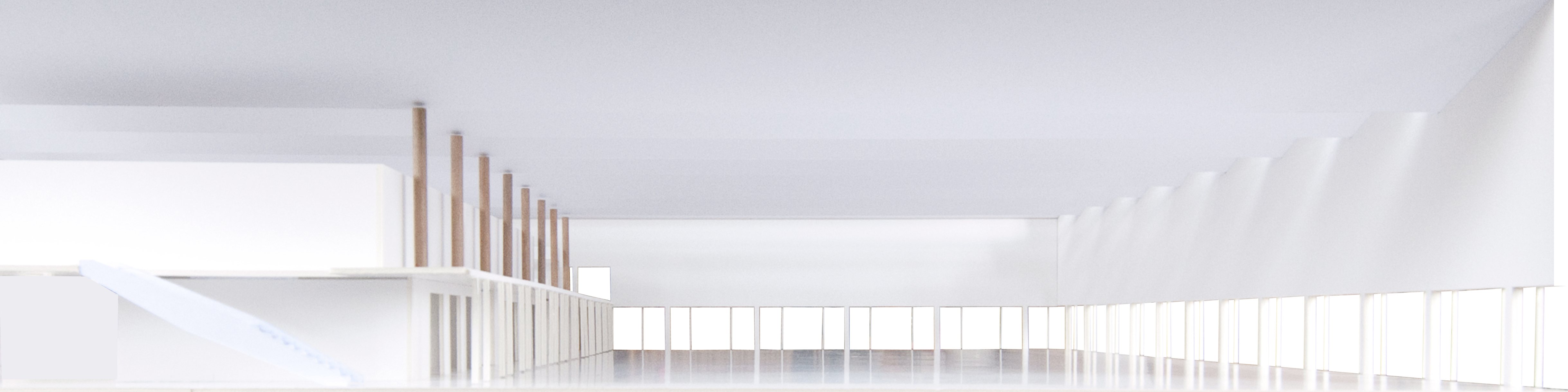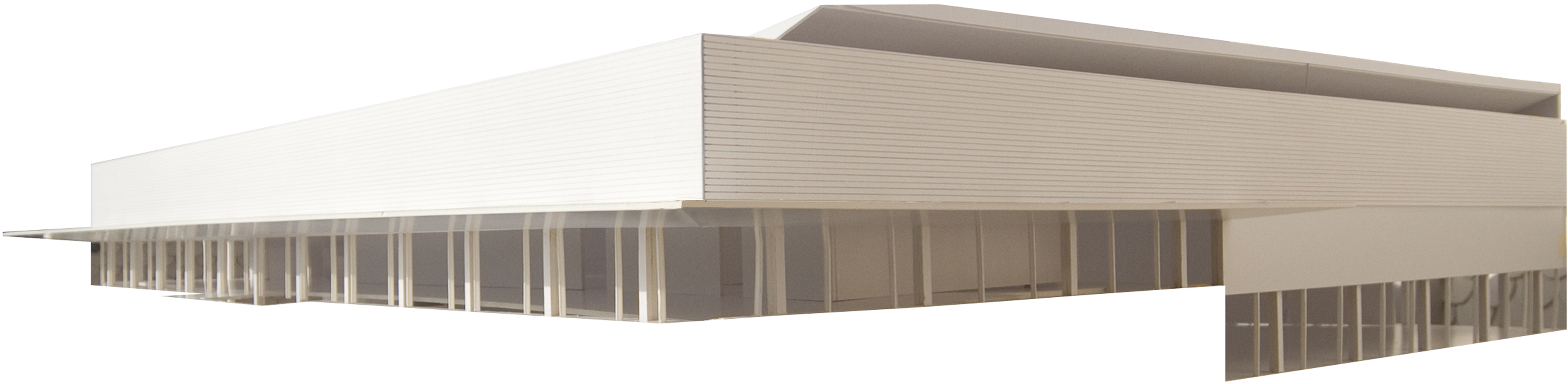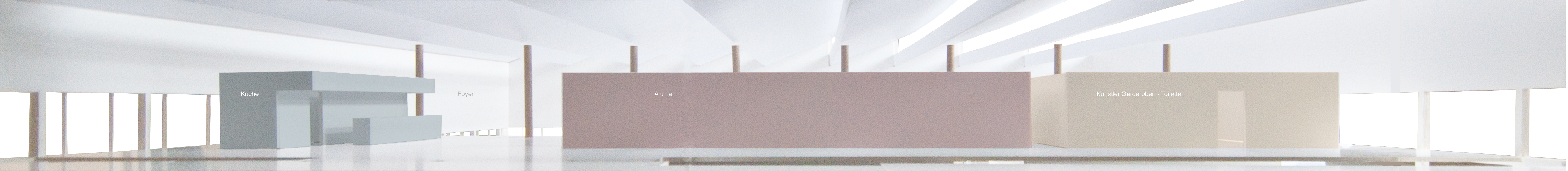 Arbeitsmodell Sporthalle – Aula- und Foyerbereich oben, Geräteräume unten