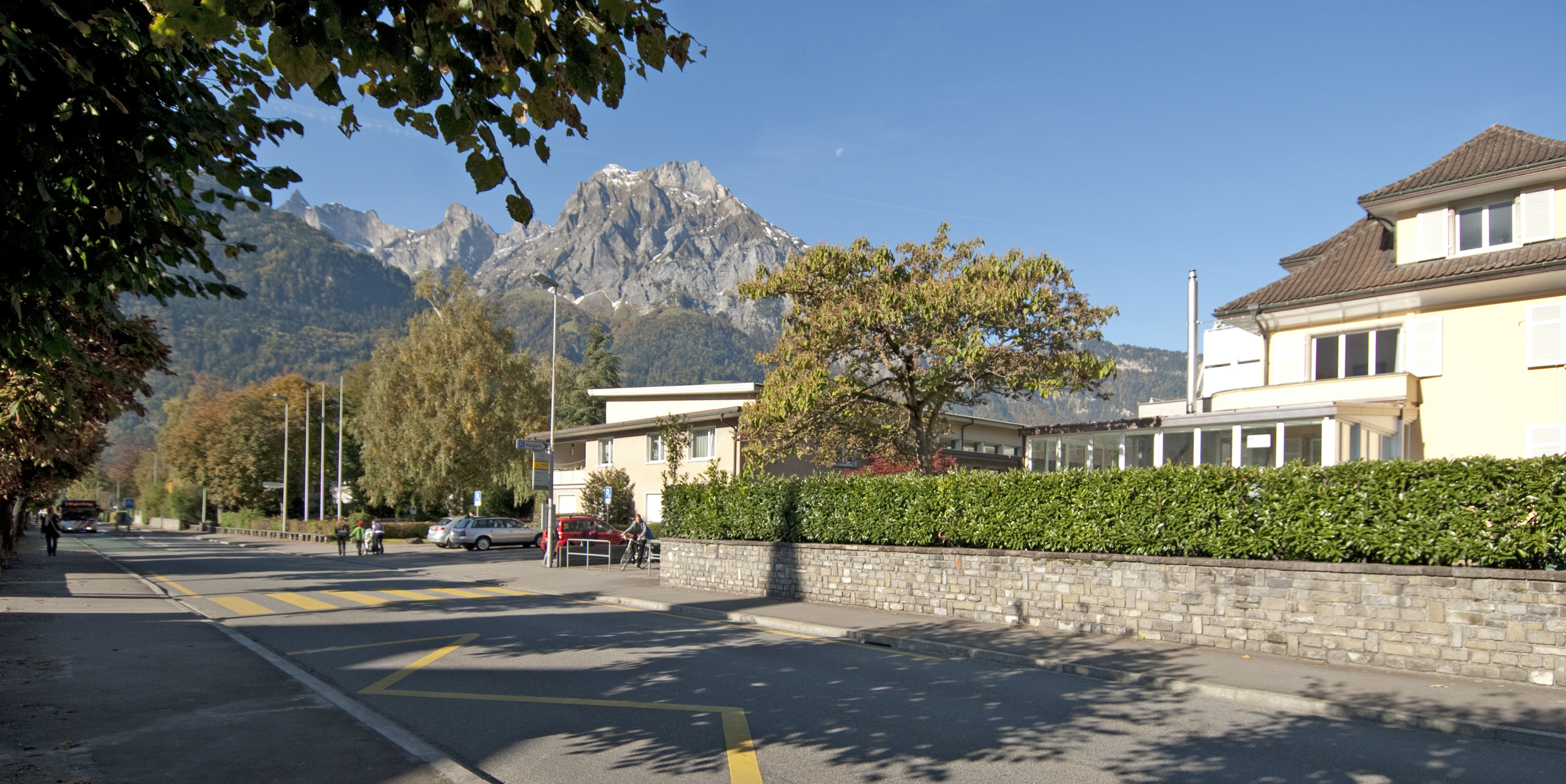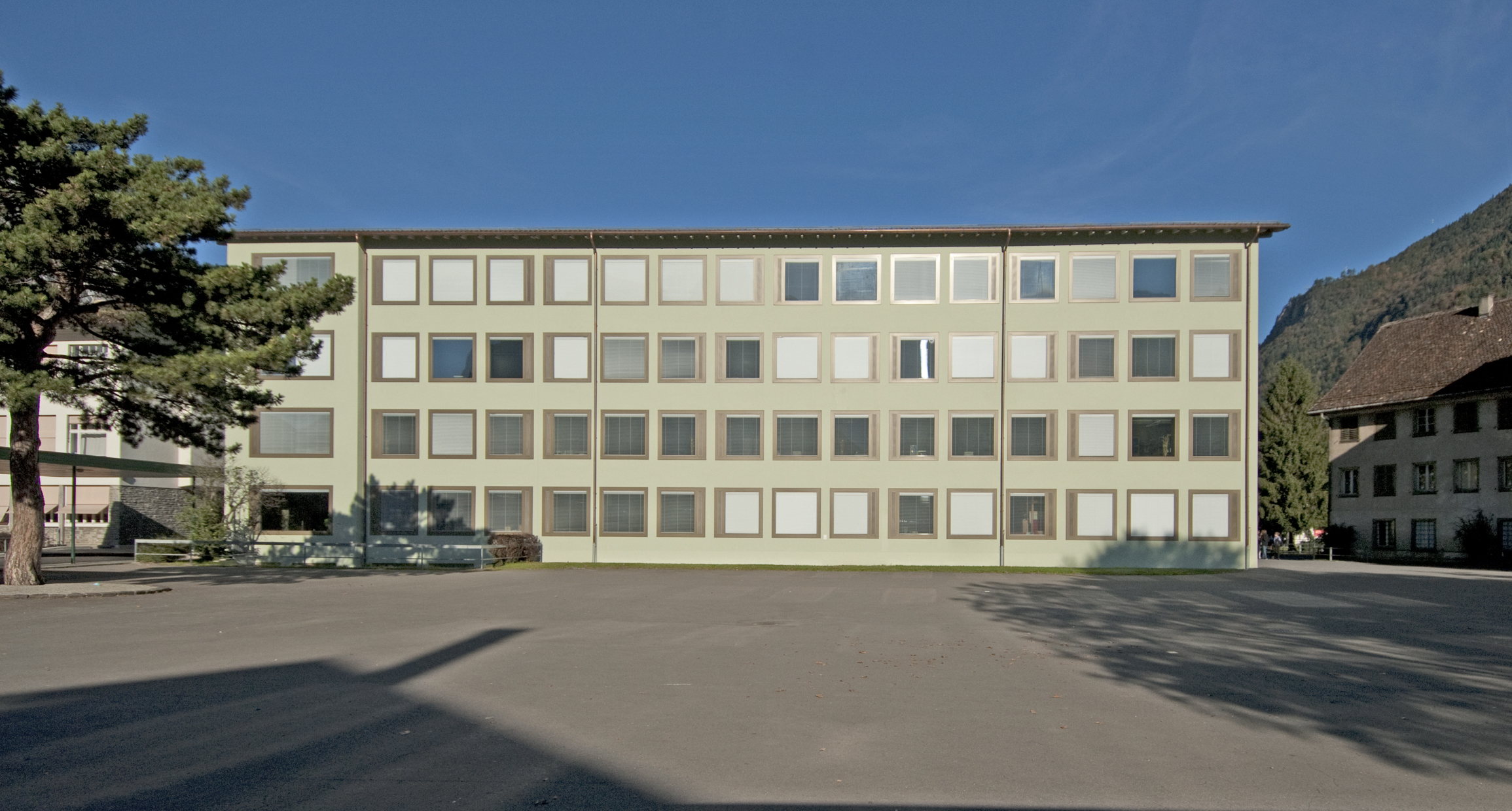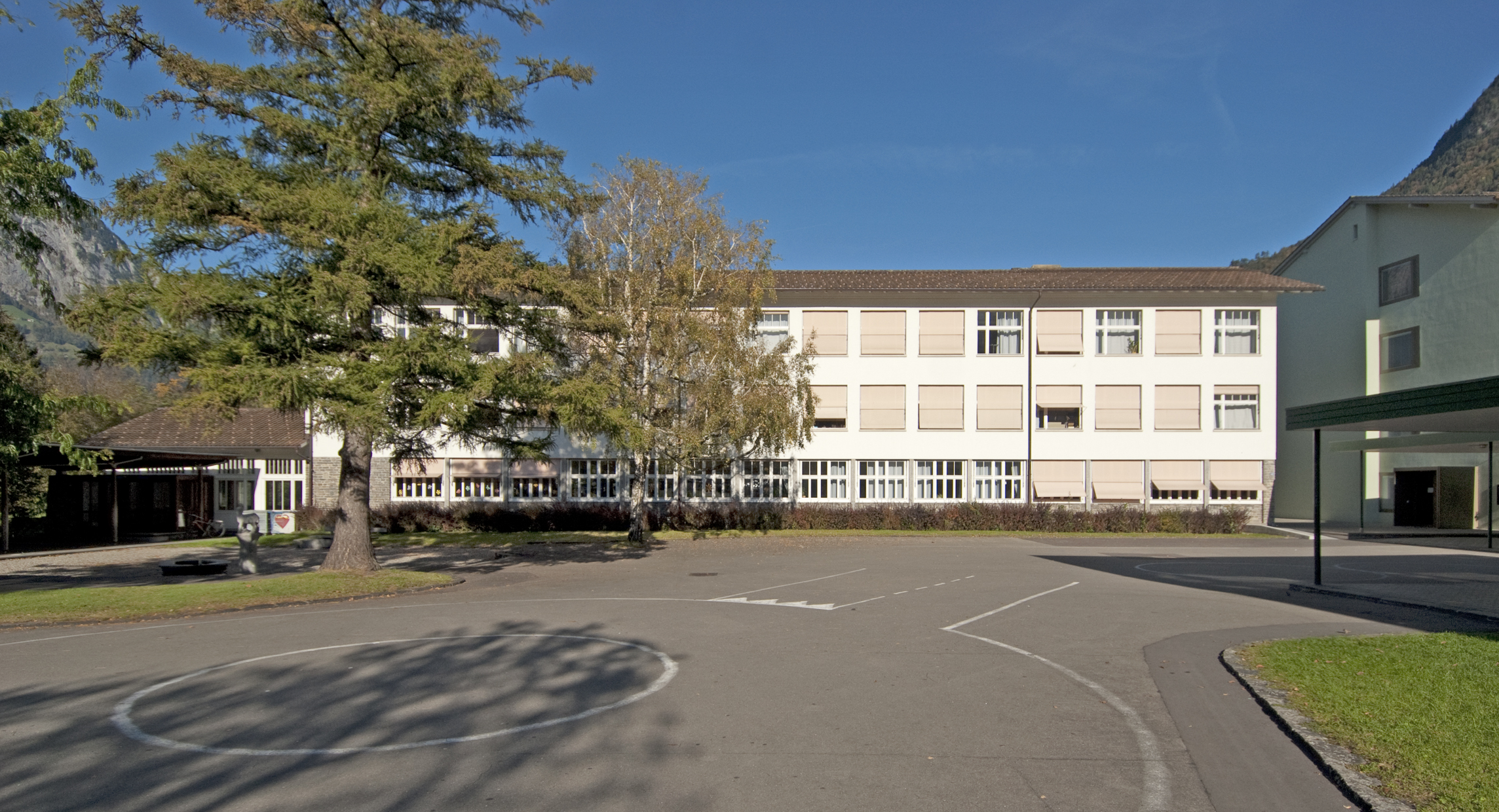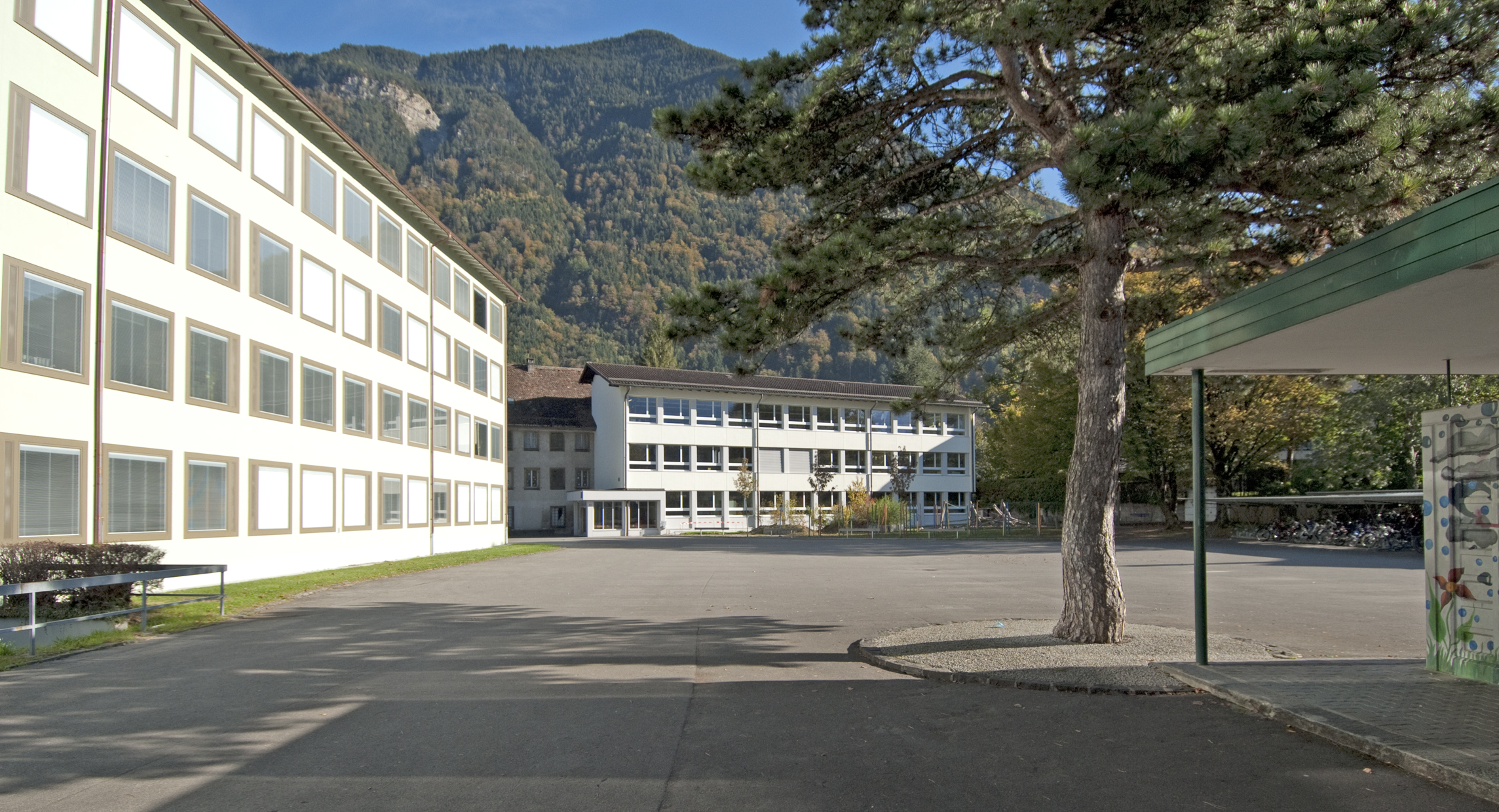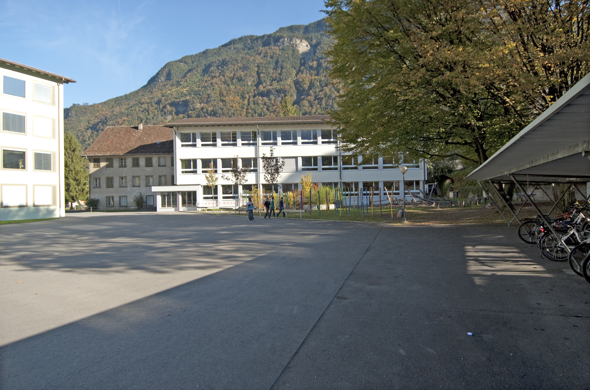 Pausenplatz – rechts Schulhaus Florentini und Bernarda.