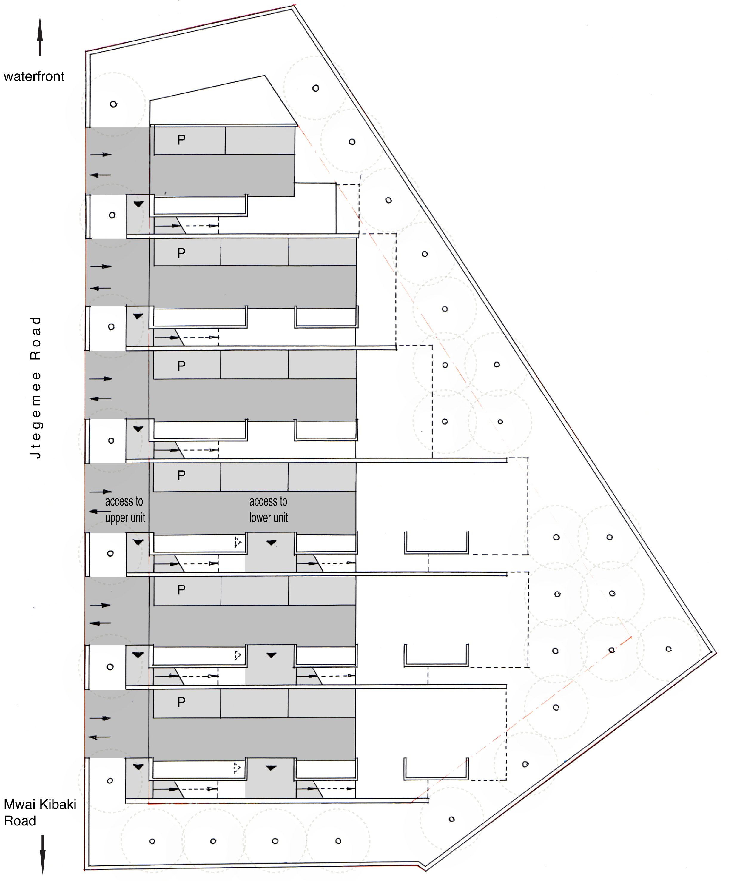ground floor – access from the street, access to the units