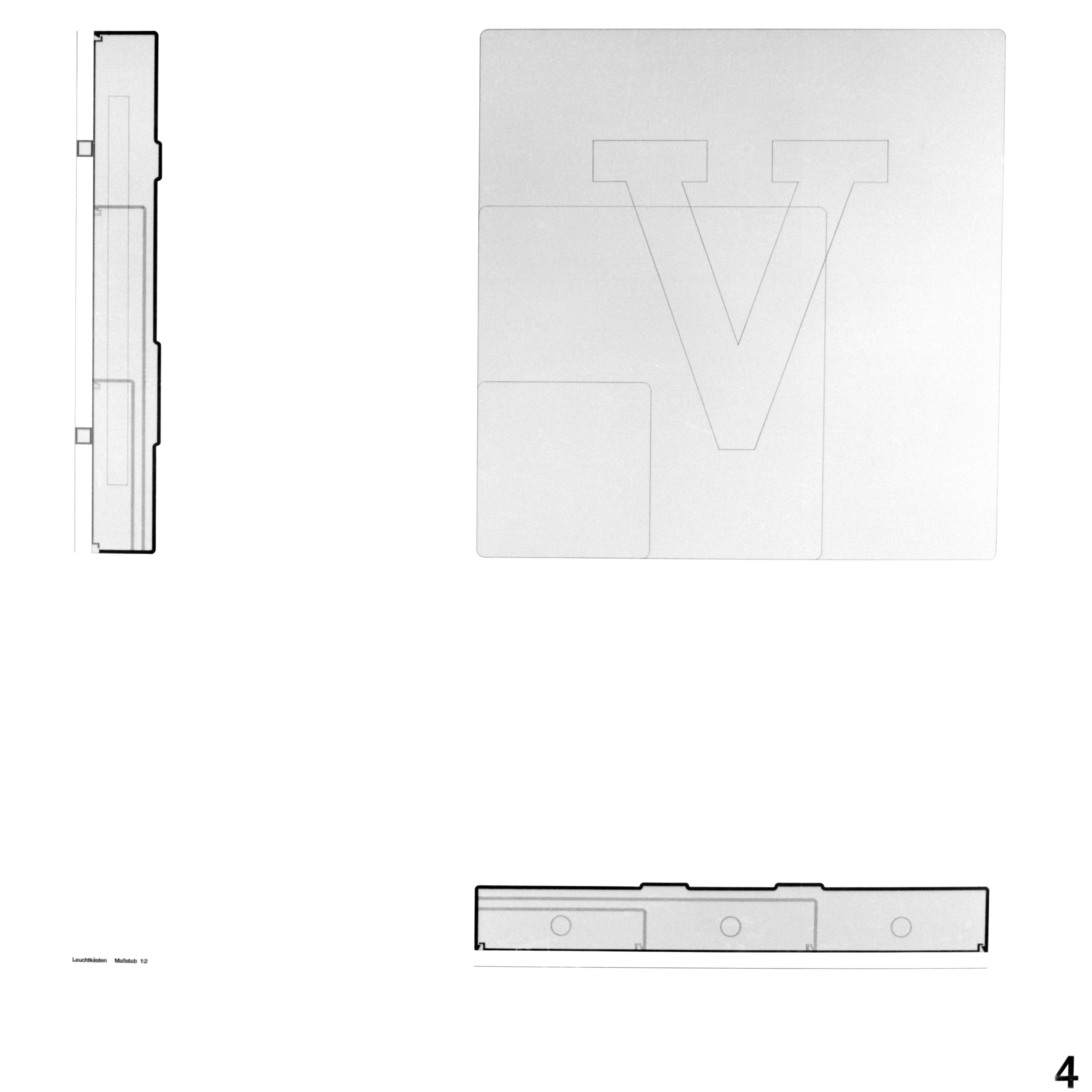 Beleuchtung: Scheiben der Embleme, blau, halbtransparent, weiss, transparent – Leuchtstoffröhren Osram, pro Emblem, 1 Hellweiss 25W 970mm, 2 Hellweiss 20W 590mm.
