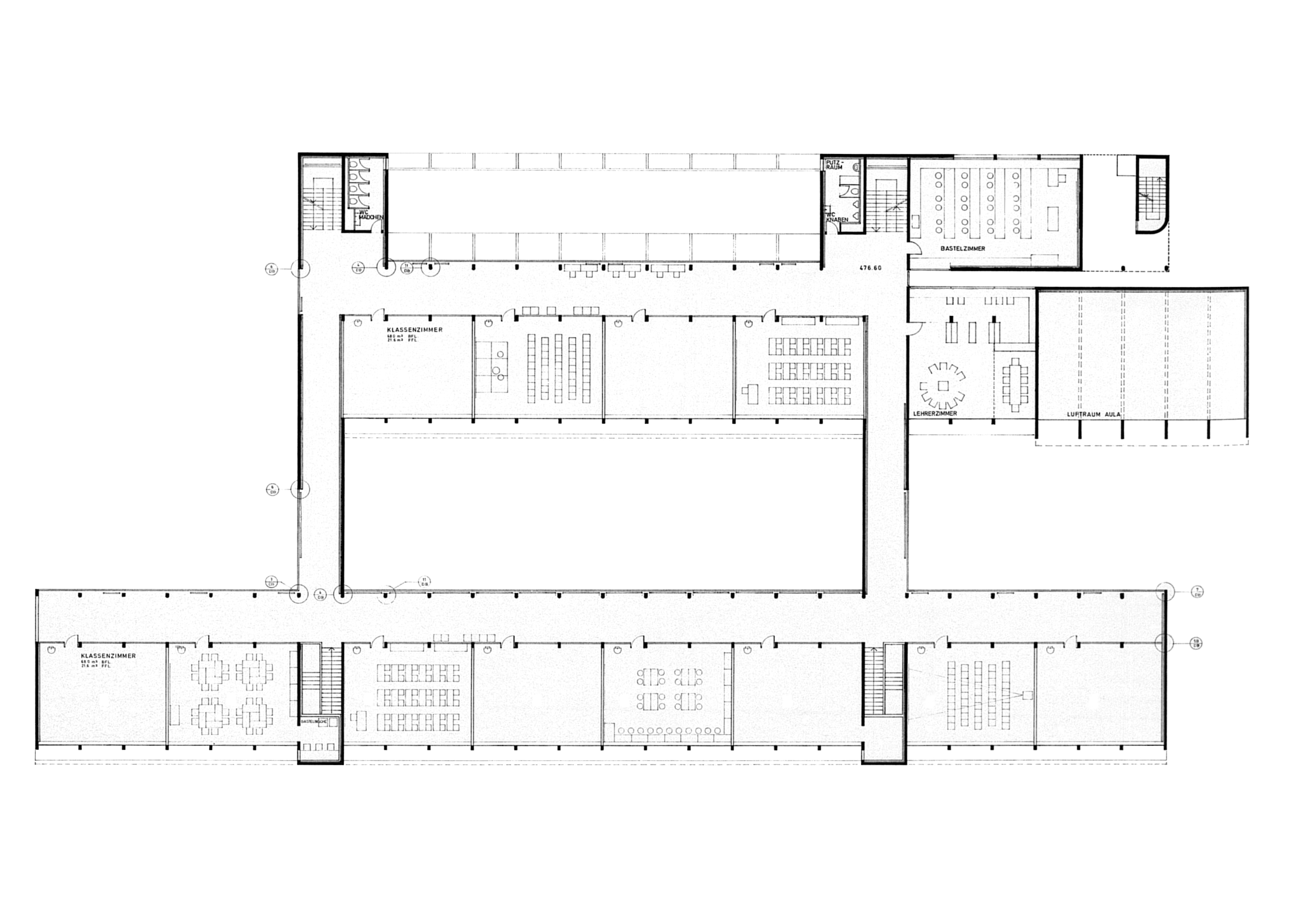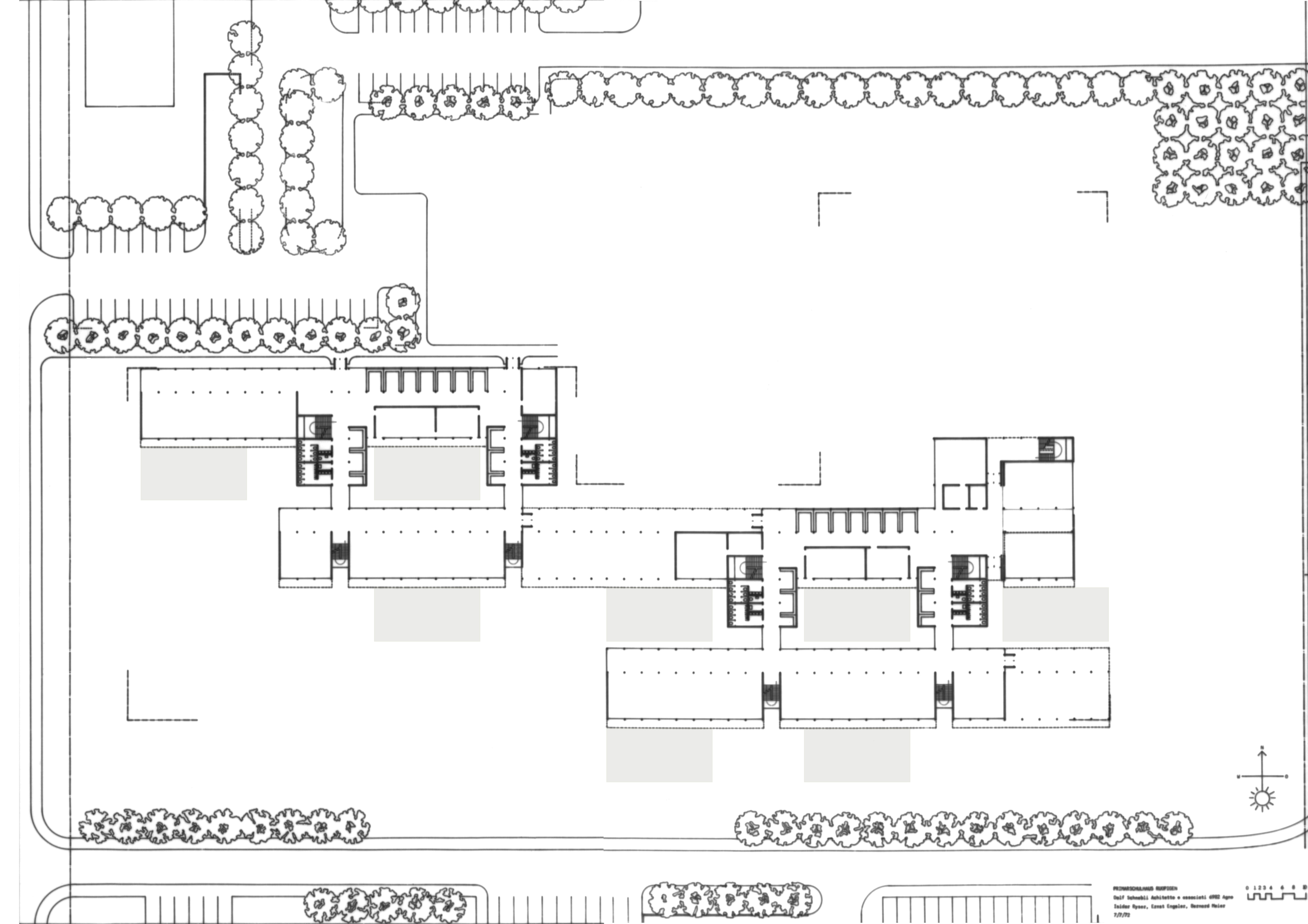Primarschulanlage Ruopigen – Vorprojekt 1972, Bauprojekt 1974 – Zeichnungen für Dolf Schnebli e associati, Agno und Zürich