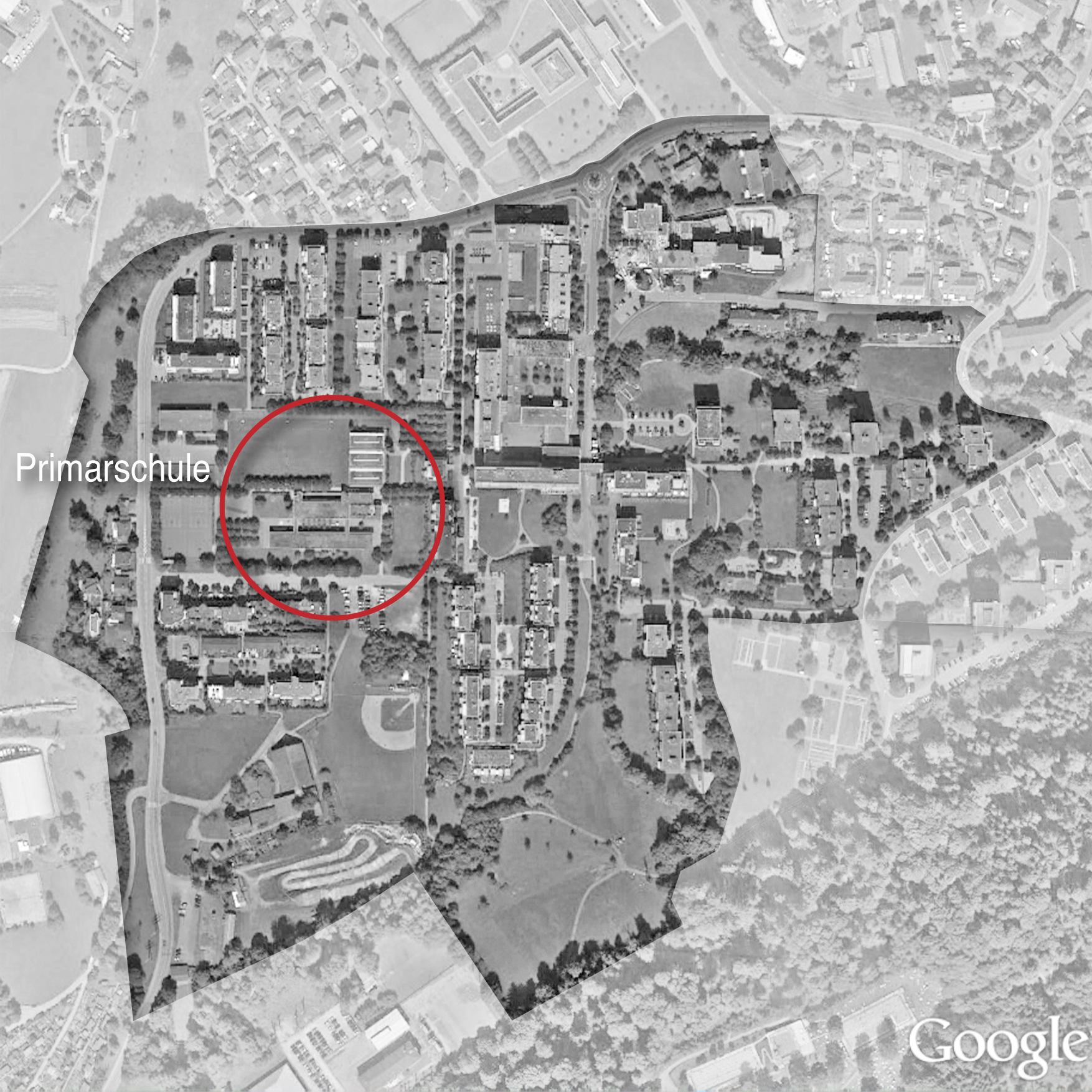 Lageplan – Primarschulhaus, Turnhalle, Sportanlagen, Landschaftsgestaltung