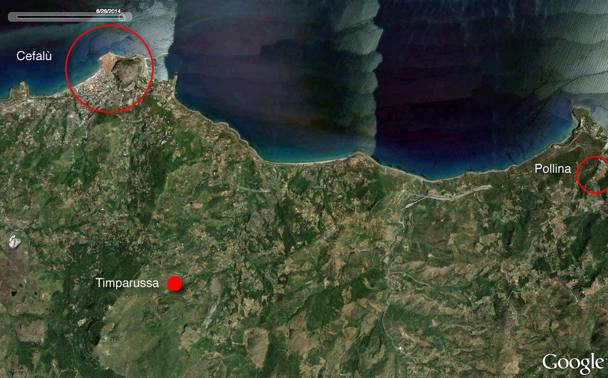 “l’erto versante orientale delle colline di Cefalù, tra un bosco di querce e il sasso aspro del monte”