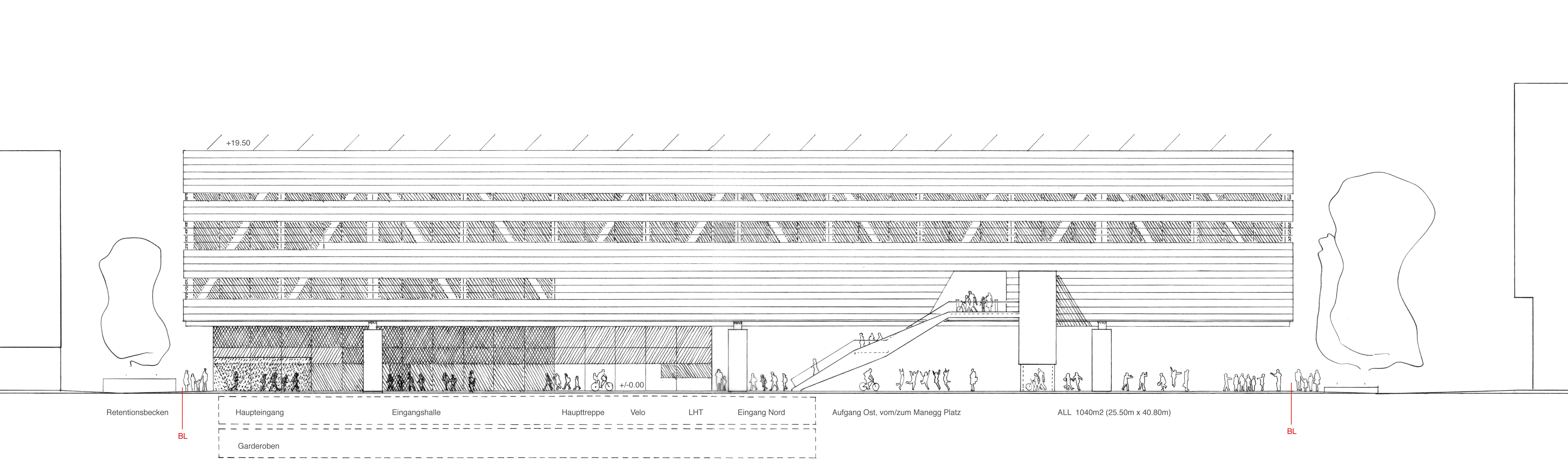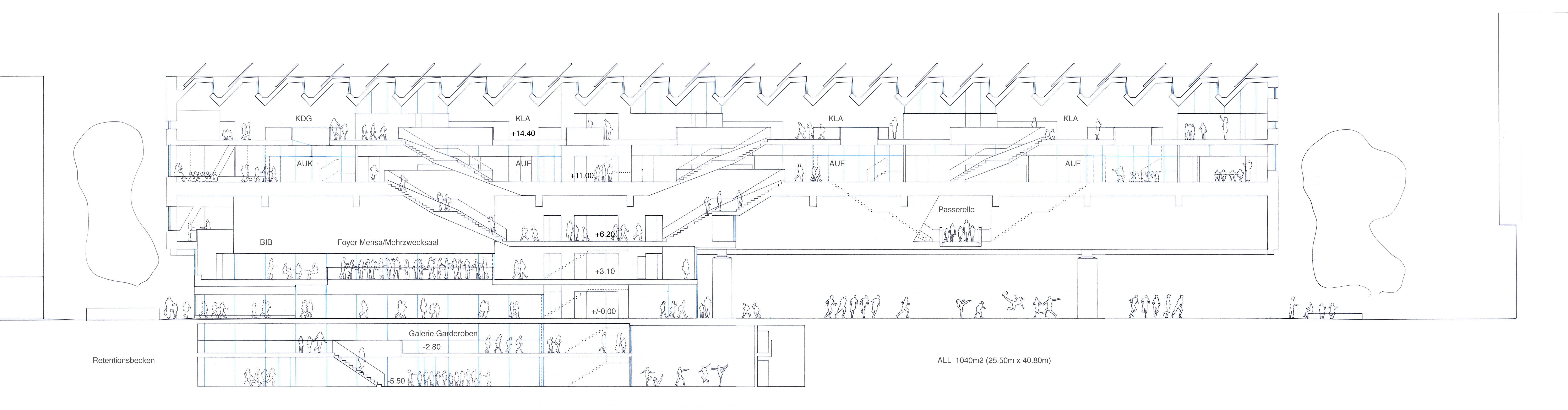 Projektwettbewerb Neubau Schulhaus Allmend und Passerelle Haspelsteg – Projekt ‘210plus’ – ARGE: Dolinski, Huser, Wüthrich