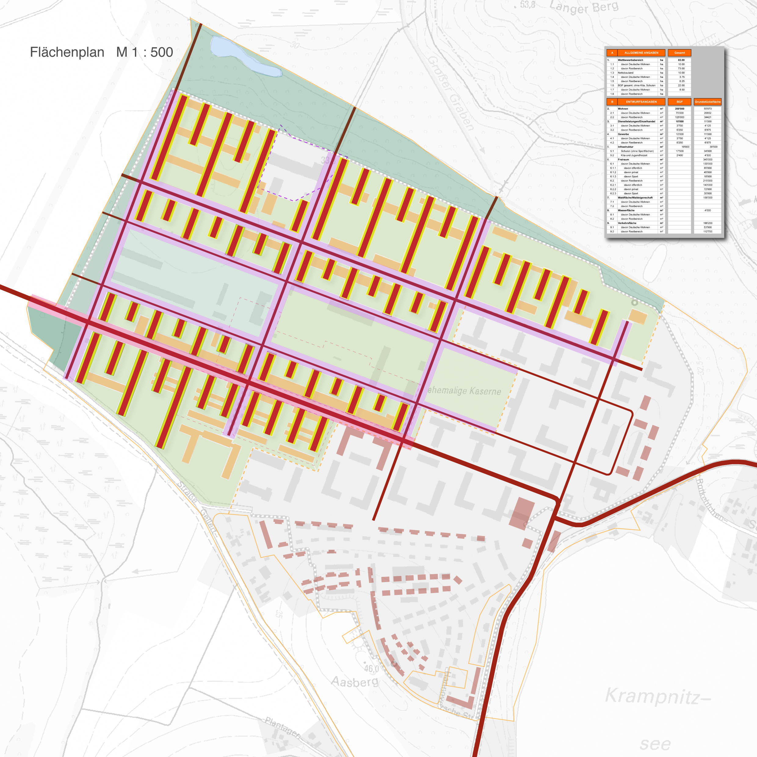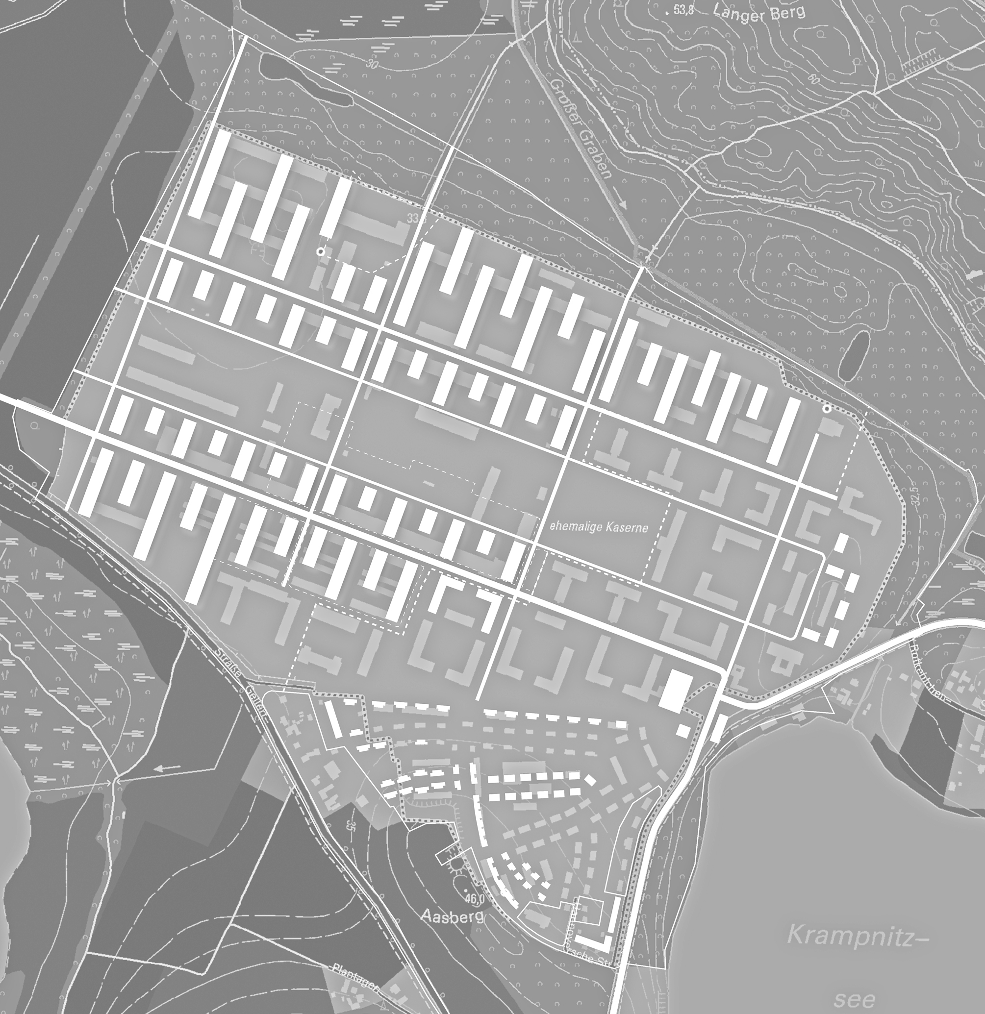 Entwurfsleitende Idee Urbanisierung des Territoriums der ehemaligen Kasernenanlage, d.h., die Schaffung eines möglichst autarken, physischen Lebensraums für 7000 Menschen, unter Berücksichtigung aller wichtigen Eigenschaften, welche den Ort und seine nähere Umgebung prägen, wie, Geografie, Topografie, Natur, Klima, Kultur, Geschichte und deren Hinterlassenschaft, usw. und den weiter unten beschriebenen Vorgaben und Kriterien.