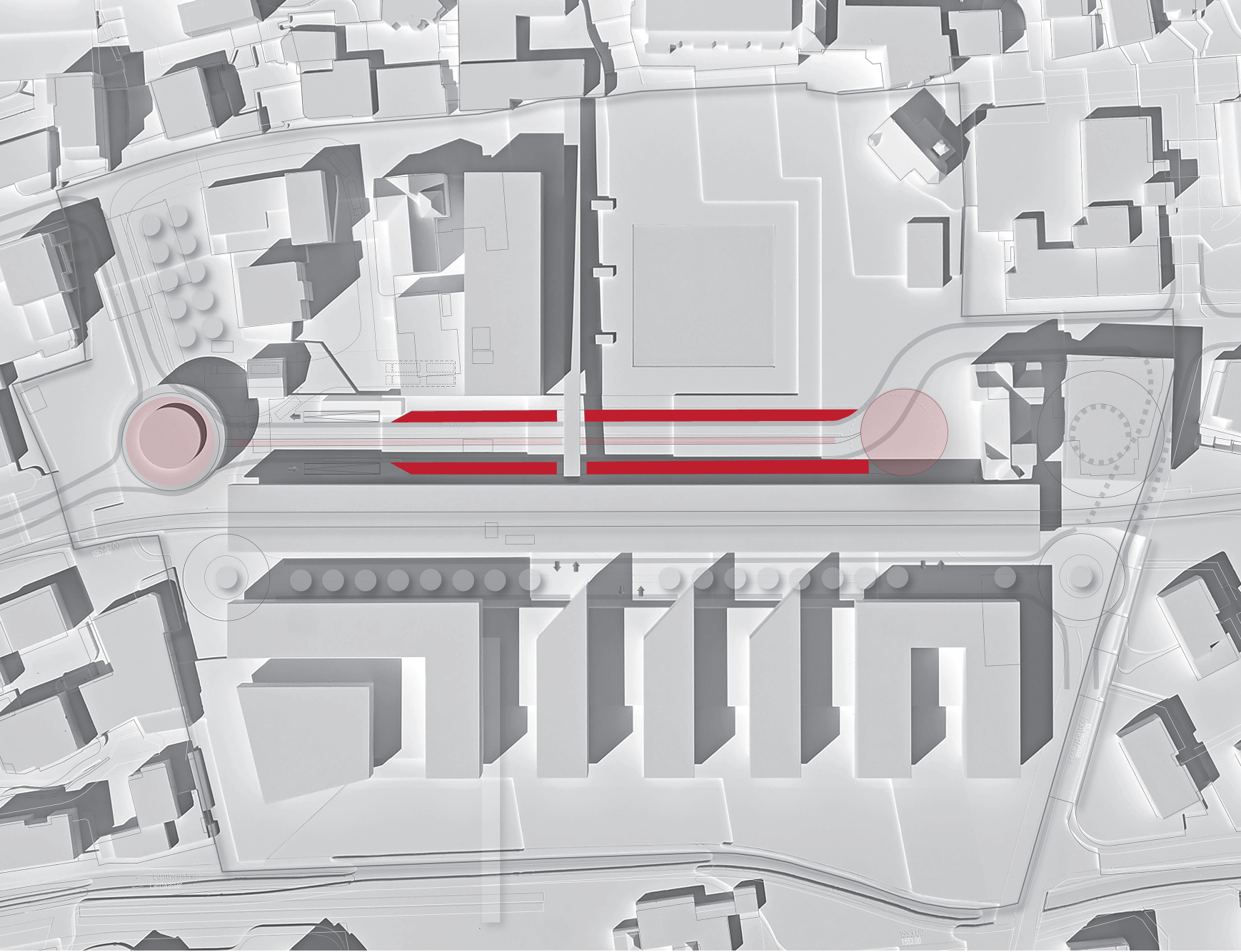 Querschnitt der Struktur über dem Kreisel der Querspange Talstrasse-Promenade
