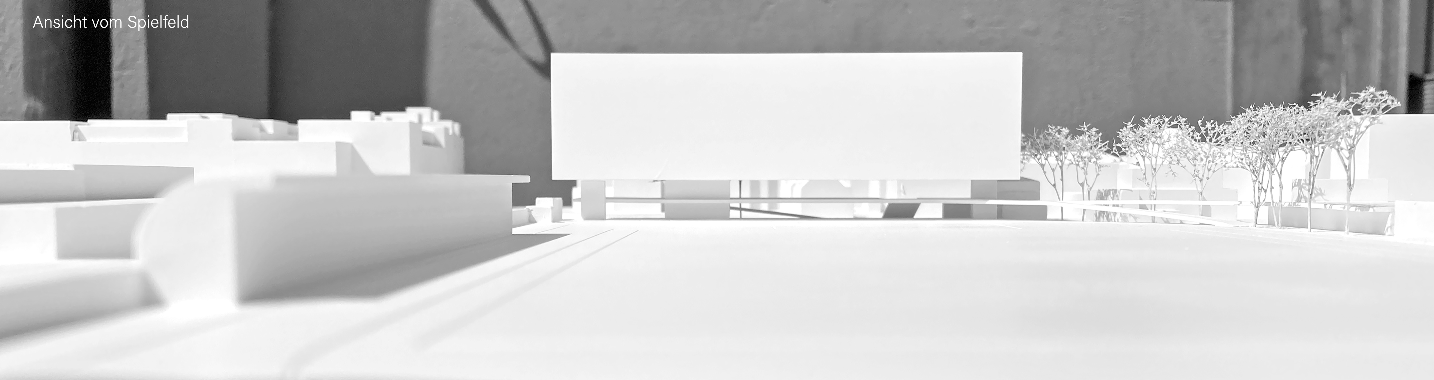 Querschnitt – Dennlerstrasse, links – Spielfeld und Mensa, rechts