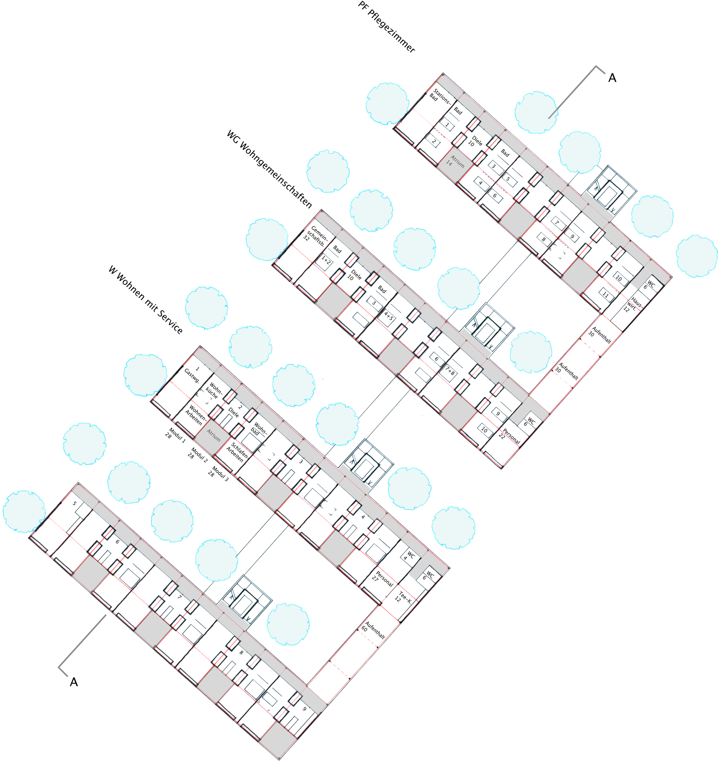 Spezialanfertigungen sind die Treppenhäuser bzw, Aufzüge.