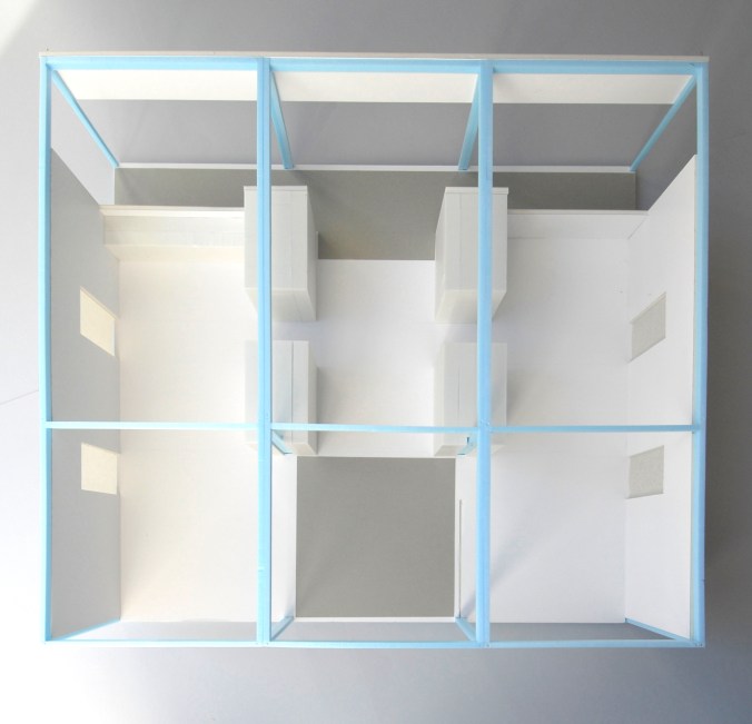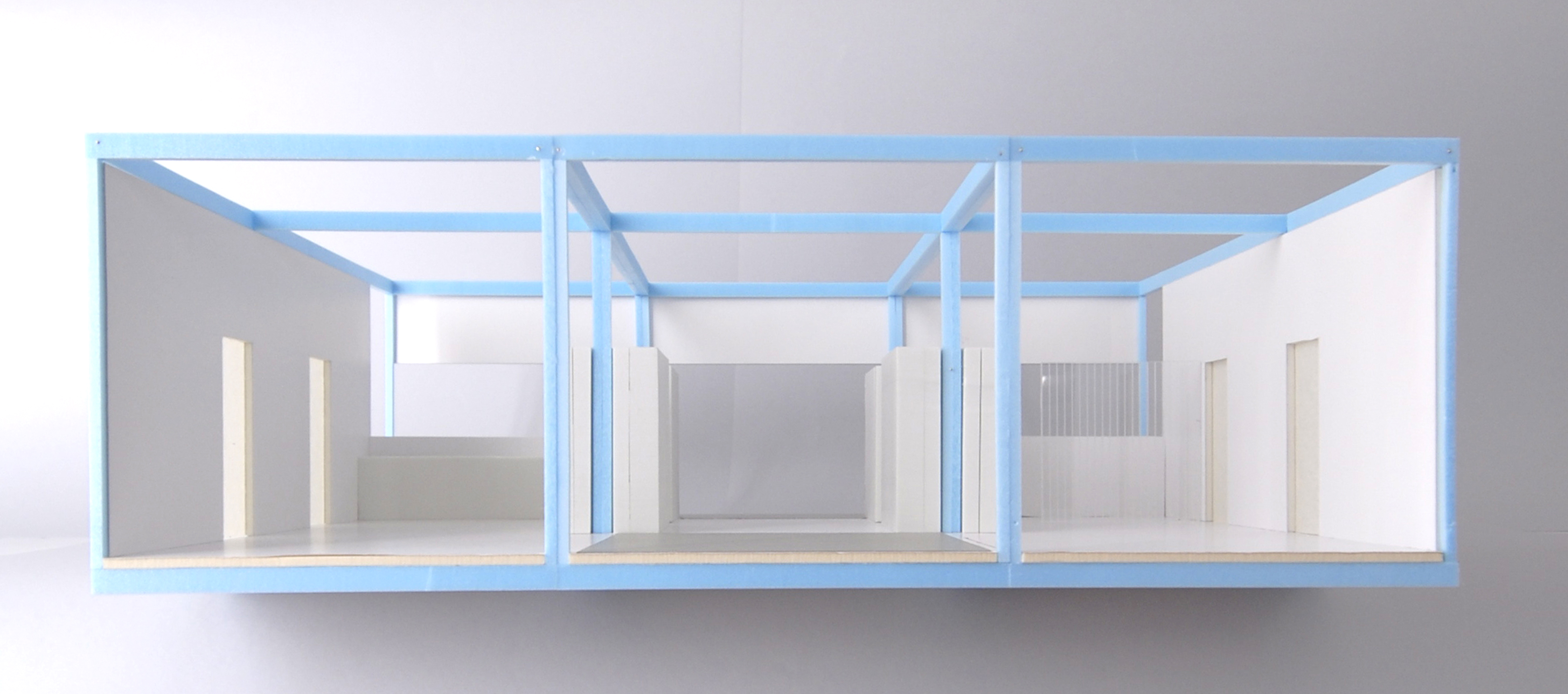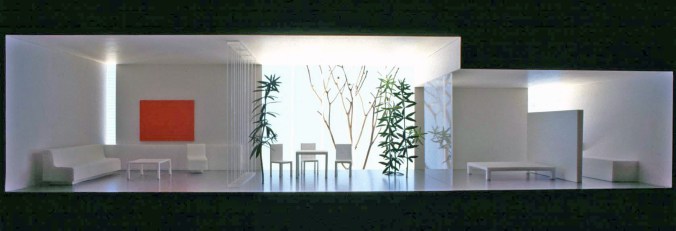 Wohnraum (links) – Atrium – Schlafraum/Bad (rechts) – Modellansicht