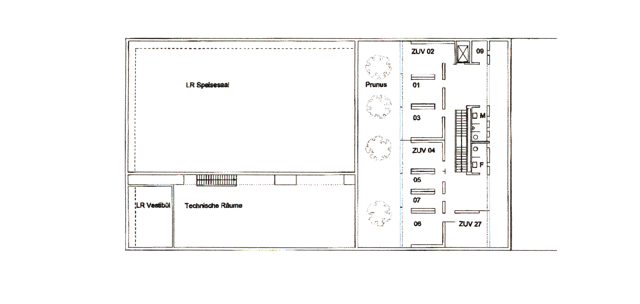 Atrium – Bereich zwischen Speisesaal und Verwaltung