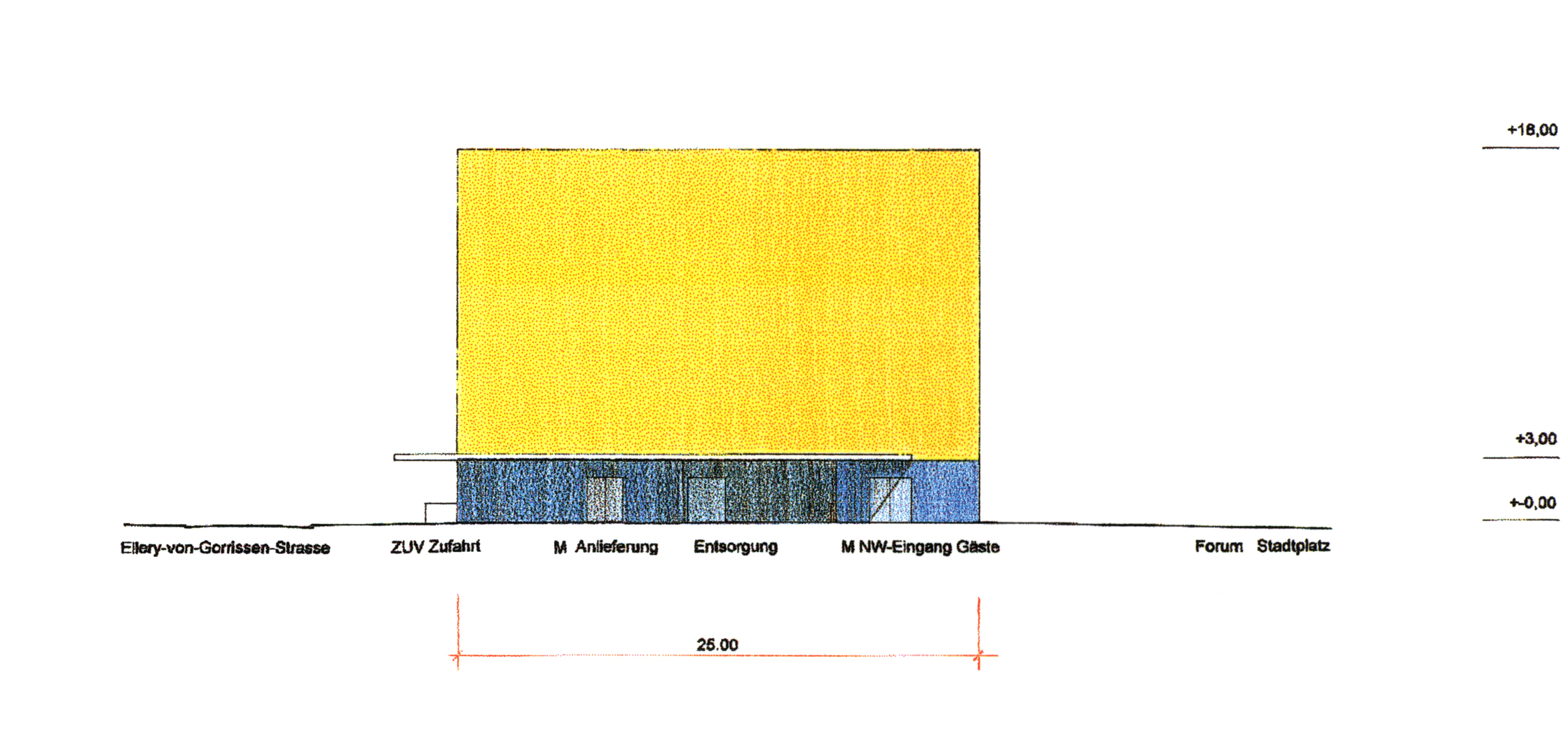 Nord-West Ansicht – links die Erich Thilo Strasse – rechts Forum-/Stadtplatz